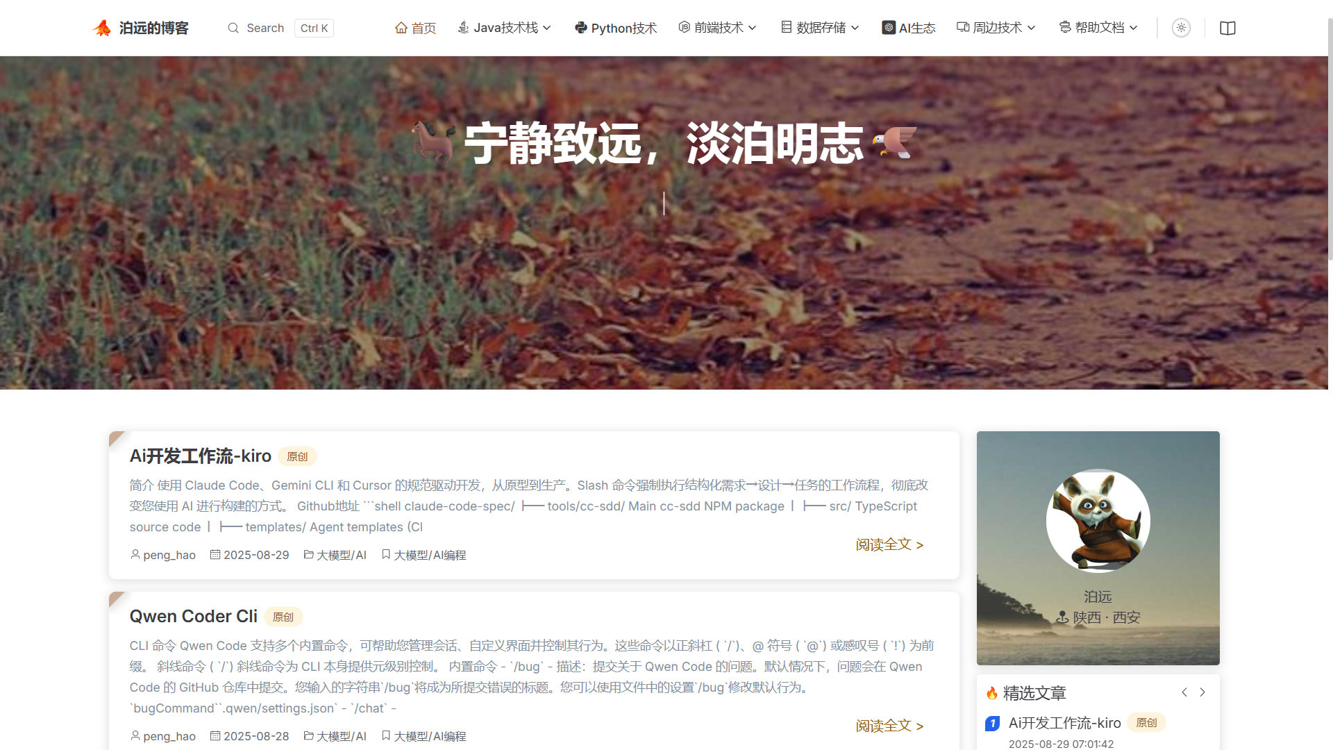 泊远的技术博客,包括Java、前端、Python、AI 等技术开发经验分享。